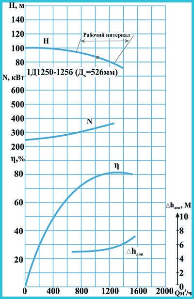 График рабочих зависимостей 1Д1250-125б (1450 об/мин)