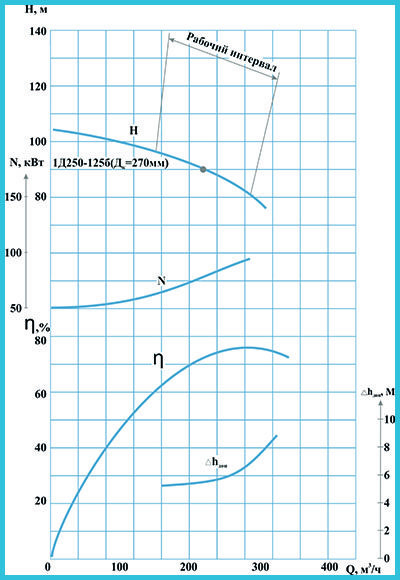 График рабочих зависимостей 1Д250-125б (1450 об/мин)