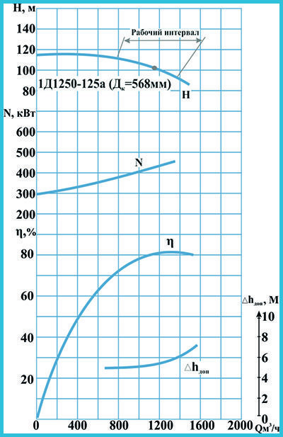 Насос 1Д1250-125а из-за наличия двустороннего рабочего колеса и двустороннего подвода жидкости имеют хорошую всасывающую способность и кавитационные качества.