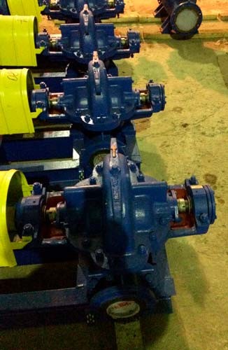 Корпус насоса имеет разъем в горизонтальной плоскости. Расположение всасывающего и напорного патрубка в нижней части корпуса насоса позволяет проводить ремонт без отключения труб и демонтажа двигателя. Двигатель приводит в действие ротор насоса через упругую втулочно-пальцевую муфту. Опорами ротора имеются радиальные или радиально-упорные подшипники. Рабочее колесо двустороннего входа, что обеспечивает равновесие осевых сил. Двойные сальниковые уплотнения надежно предотвращают протекание по валу.