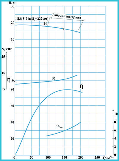 Насос 1Д315-71а из-за наличия двустороннего рабочего колеса и двустороннего подвода жидкости имеют хорошую всасывающую способность и кавитационные качества.