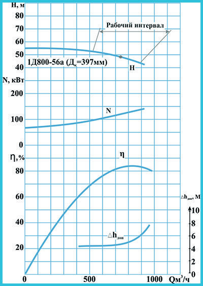 График рабочих зависимостей 1Д800-56а (1450 об/мин)