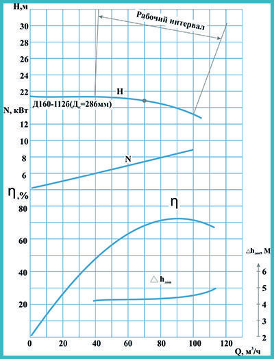 График рабочих зависимостей Д160-112б (1450 об/мин)