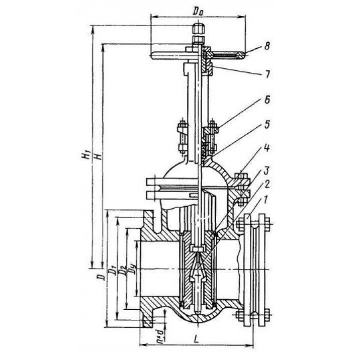 Тип: задвижка параллельная двухдисковая с выдвижным шпинделем.