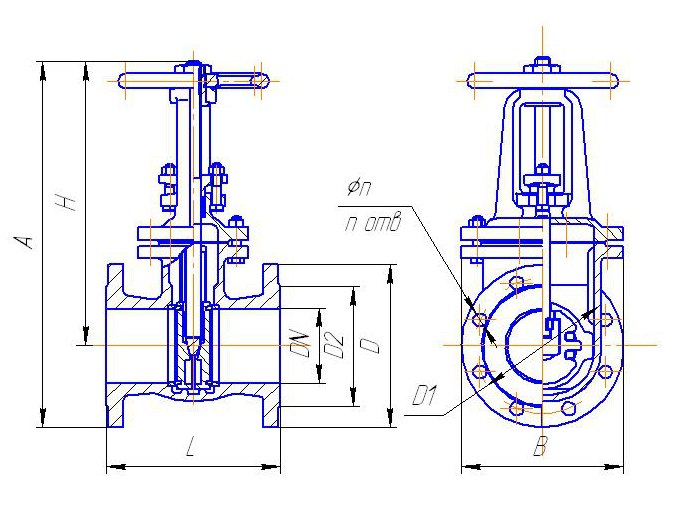 Тип: задвижка клиновая параллельная двухдисковая с выдвижным шпинделем.