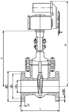 Габаритные и присоединительные размеры клиновой задвижки 31с942р Ду800: