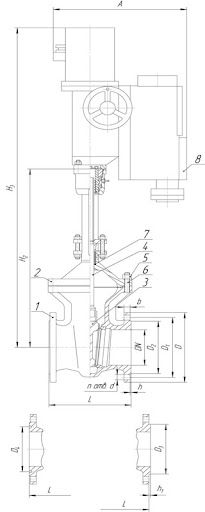 Габаритные и присоединительные размеры клиновой задвижки 31с949нж: